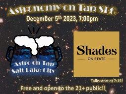 Astronomy on Tap features accessible, engaging science presentations on space and science topics ranging from planets to black holes to galaxies to the beginning of the Universe! Presenters are from local institutions. There is always lots of time to interact with the presenters and other scientists who inevitably tag along for the fun. Follow @AoTSaltLakeCity on Instagram and Twitter or visit https://astronomyontap.org/ for more information and a list of December presenters!