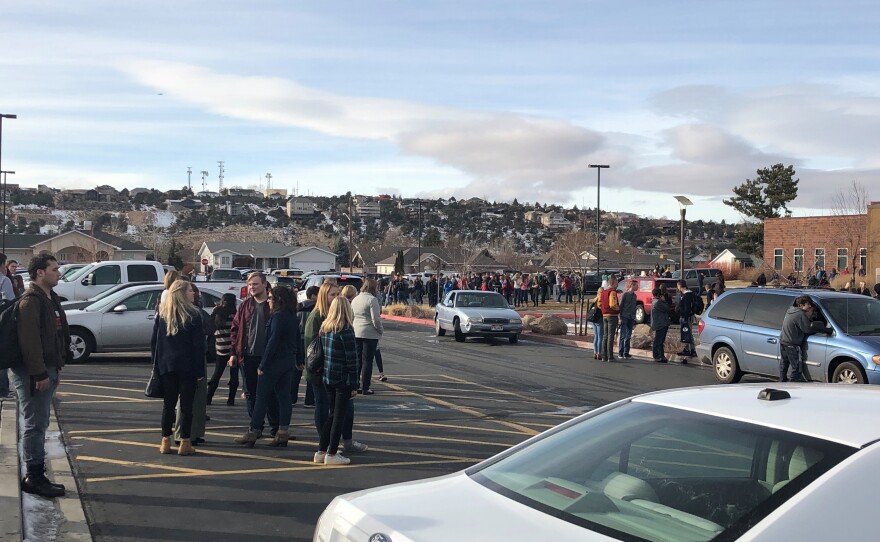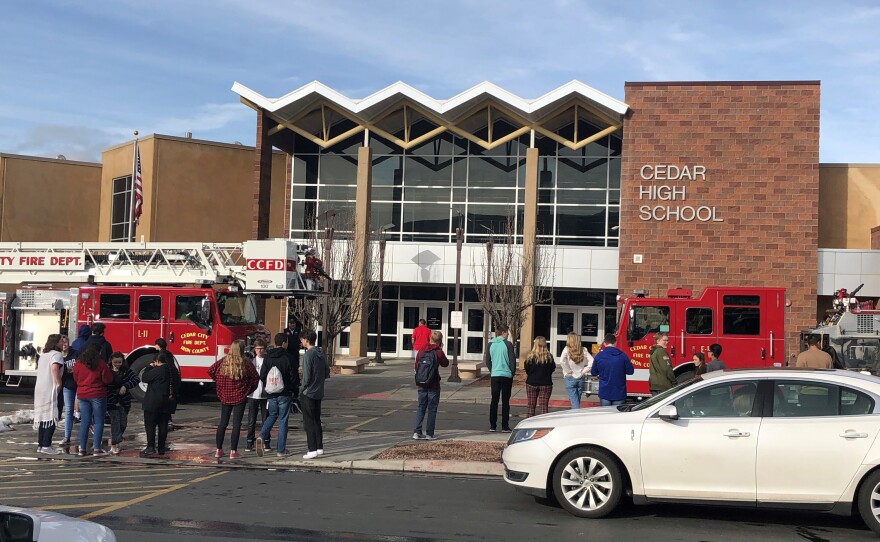 "We had a report of some smoke near the counseling center," said Rich Nielson, head of secondary schools for Iron County School District. "So the alarms went off, students evacuated and the fire departments determined there was an electrical that they are working to make sure is out. So all of the students have been excused to go home, get on the buses and take off, however, there are a number of students that left cell phone and keys in their classrooms so they are choosing right now to hang out and hope that they can get into the building and retrieve their items as soon as the fire department clears the building."